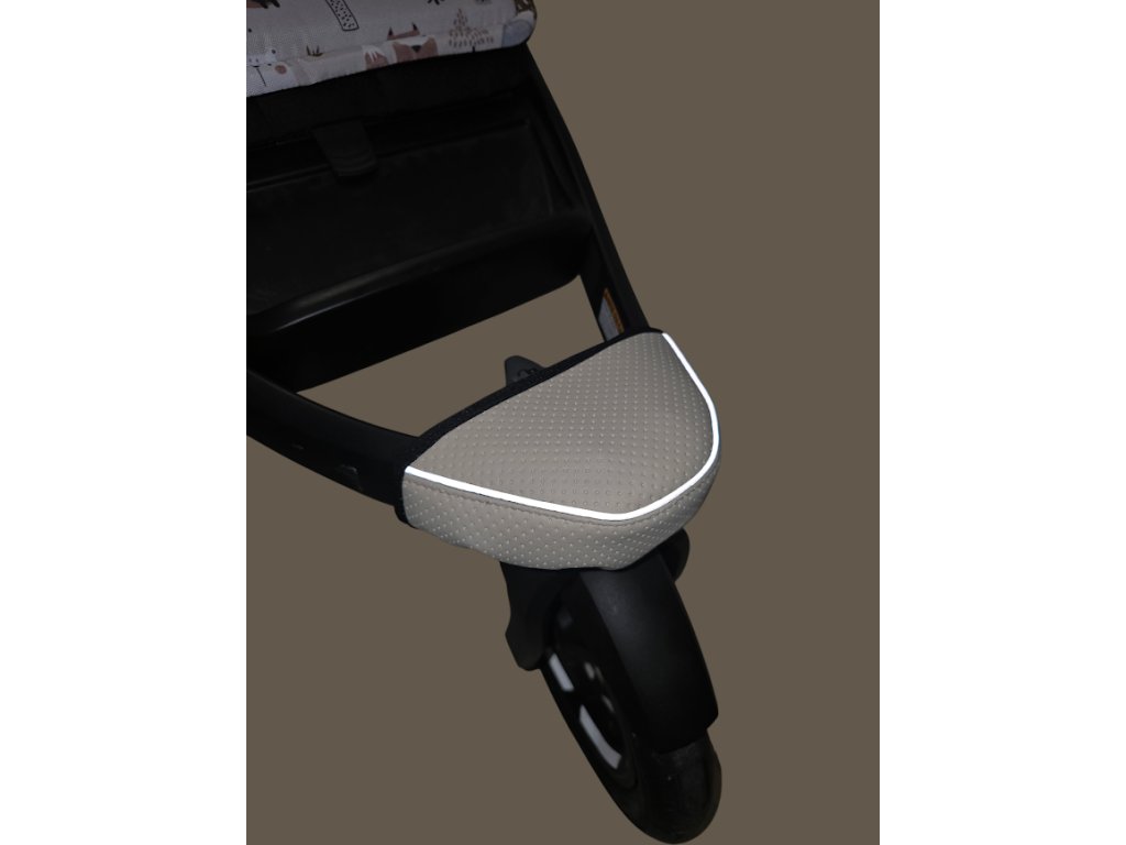 Ochrana plastu předního kola chrání před poškrábáním při manipulaci s kočárkem, ať už při jízdě nebo skládáním do auta. Ochrana je navíc opatřena reflexním páskem pro lepší viditelnost