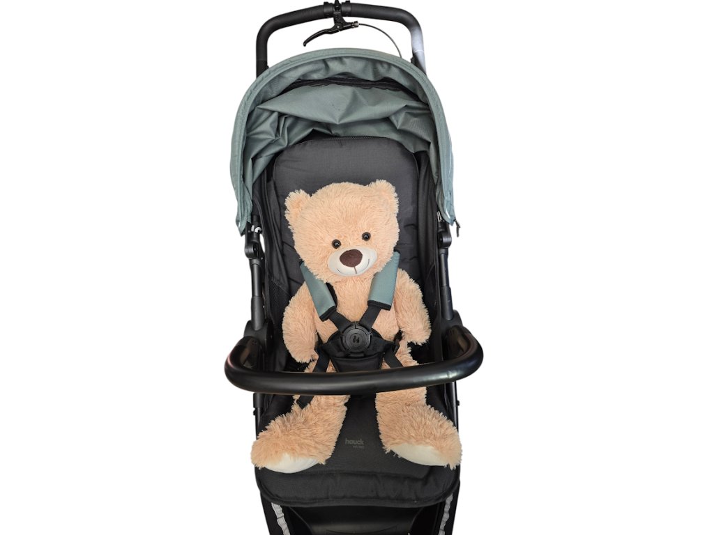 Polstrovaná ochrana pásů je ušitá z nepromokavé kočárkoviny, takže není nutné neustále praní, stačí otřít vlhkým hadříkem.