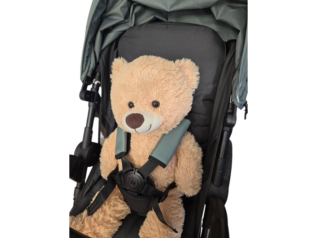Ochrany jsou vyplněné 5 mm molitanem, zaručí tak komfort dítěte při jízdě ve sportovním kočárku nebo v autosedačce. Zapínají se na suchý zip.