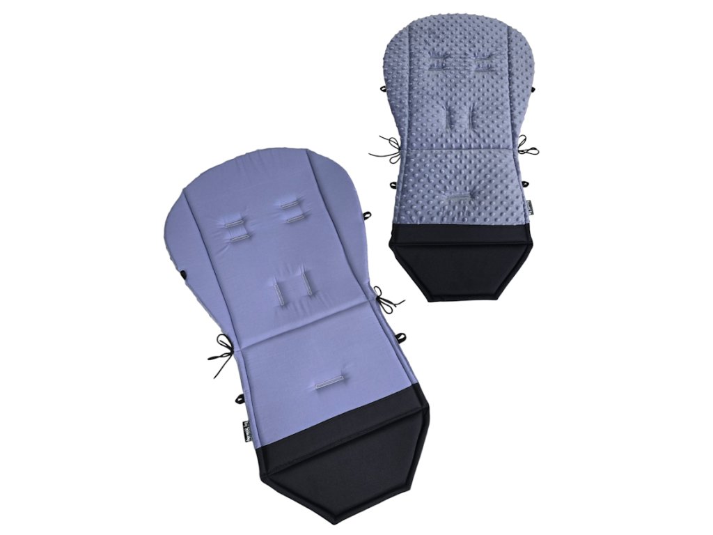 Podložka má letní stranu z příjemných savých a prodyšných materiálu, zimní stranu z heboučké plyšové minky a můžete ji tak jednoduše otáčet podle aktuálního počasí. Podložka má ve spodní části omyvatelnou kočárkovinu pro snadnou údržbu od špinavých botiček. Podložka je v zádové oblasti rozšířená do stran kočárku pro větší pohodlí dítěte. Jako jediní používáme výplň podložek 2cm vysokou studenou HR pěnu, která je velmi prodyšná, optimálně zajišťuje prostupnost vzduchu, výborně odvádí teplo, je tvarově stálá, ani po několika vypráních se nedeformuje, pružně se přispůsobí lidskému tělu, zamezuje výskytu roztočů a díky výšce tlumí otřesy kočárku. Takže pokud dítěti chcete dopřát opravdový komfort, je to jasná volba.