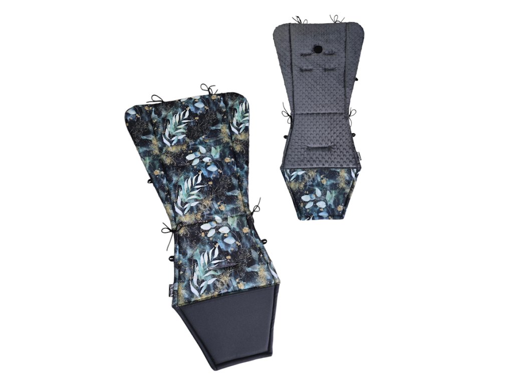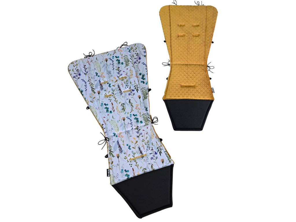 Podložka má letní stranu z příjemných savých a prodyšných materiálu, zimní stranu z heboučké plyšové minky a můžete ji tak jednoduše otáčet podle aktuálního počasí. Podložka má ve spodní části omyvatelnou kočárkovinu pro snadnou údržbu od špinavých botiček. Podložka je v zádové oblasti rozšířená do stran kočárku pro větší pohodlí dítěte. Jako jediní používáme výplň podložek 2cm vysokou studenou HR pěnu, která je velmi prodyšná, optimálně zajišťuje prostupnost vzduchu, výborně odvádí teplo, je tvarově stálá, ani po několika vypráních se nedeformuje, pružně se přizpůsobí lidskému tělu, zamezuje výskytu roztočů a díky výšce tlumí otřesy kočárku. Takže pokud dítěti chcete dopřát opravdový komfort, je to jasná volba.