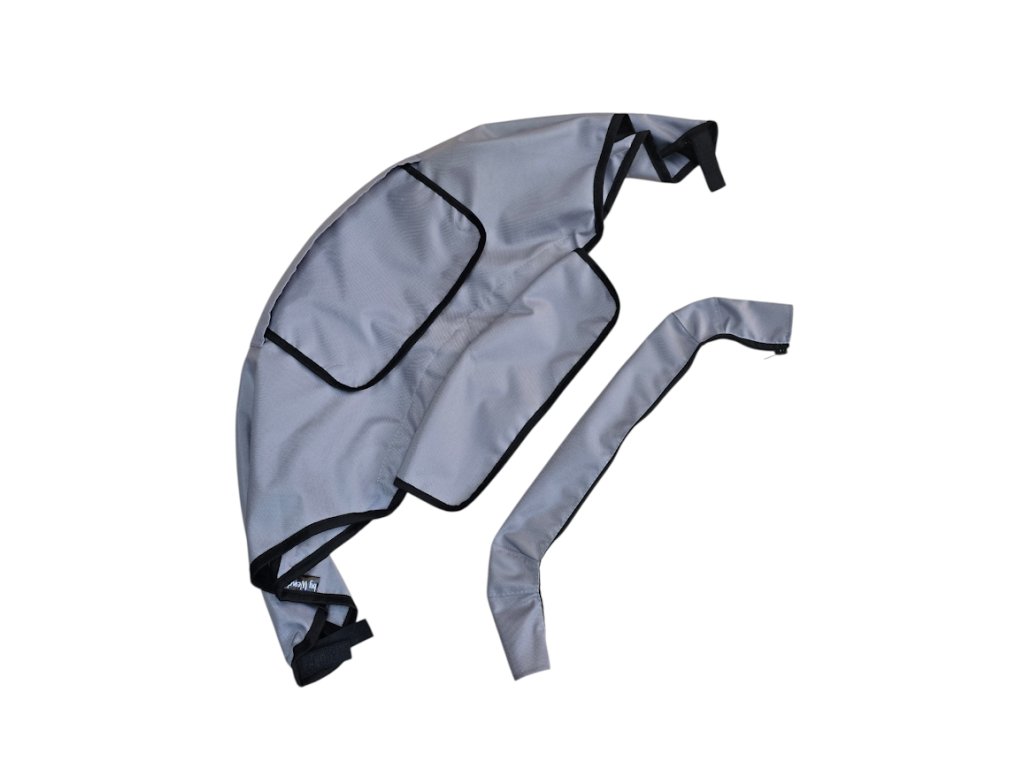 Stříšky šijeme z nepromokavé kočárkoviny a podšíváme je impregnovaným šusťákem. Stříšku šijeme komplet včetně výztuží, takže jednoduše vyměníte starou nefunkční za naši novou vymazlenou. Povolením 3 šroubků stříšku sundáte a navléknete novou na přední kovový prut, zapnete zip v zadní části, zašroubujete a jedete na procházku.