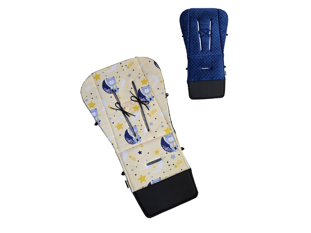 Podložka má letní stranu z příjemných savých a prodyšných materiálu, zimní stranu z heboučké plyšové minky a můžete ji tak jednoduše otáčet podle aktuálního počasí. Podložka má ve spodní části omyvatelnou kočárkovinu pro snadnou údržbu od špinavých botiček. Podložka je v zádové oblasti rozšířená do stran kočárku pro větší pohodlí dítěte. Jako jediní používáme výplň podložek 2cm vysokou studenou HR pěnu, která je velmi prodyšná, optimálně zajišťuje prostupnost vzduchu, výborně odvádí teplo, je tvarově stálá, ani po několika vypráních se nedeformuje, pružně se přispůsobí lidskému tělu, zamezuje výskytu roztočů a díky výšce tlumí otřesy kočárku. Takže pokud dítěti chcete dopřát opravdový komfort, je to jasná volba.