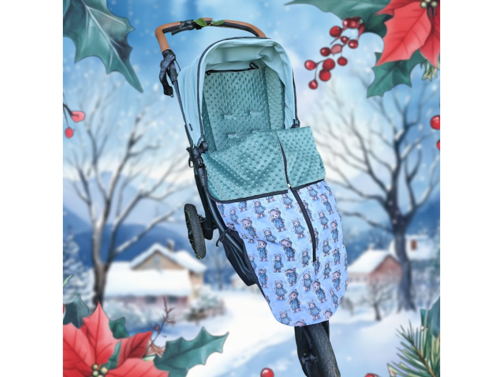 Zimní nepadací deka má zip prostřed, tak aby její používání bylo co nejsnažší pro manipulaci s malými dětmi. Venkovní vrstva je z nepromokavé kočárkoviny a spodní strana z heboučké plyšové minky (fleece), kterou děti zbožňují na dotek a hezky se do ní zachumlají. Deky mají kapsu na nohy, tak aby prckovi netáhlo na nožky a můžete ji zaháknout pod polohování nohou, pod podložku a nebo do ní nožky přímo strčit. Deka má po strannách dvojí upevnění pomocí šňůrek a můžete ji přivázat kdekoliv na konstrukci kočárku a nebo přímo k naším podložkám do kočárku, které jsou k tomu uzpůsobeny. Deka je zateplená 300g vatelínem.